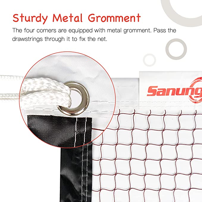 • Easy Installation: The four corners of this badminton net are equipped with metal eyelets. You only need to pass the four drawstrings provided through the holes to fix the net. The function of the drawstring is to straighten the four sides of the net, and then fix the drawstring on the badminton net racket.